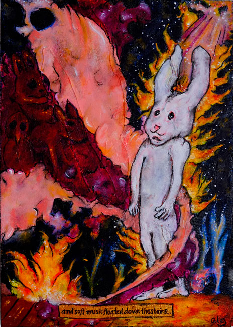 and soft music floated down the stairs.